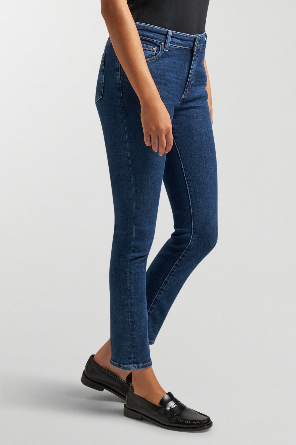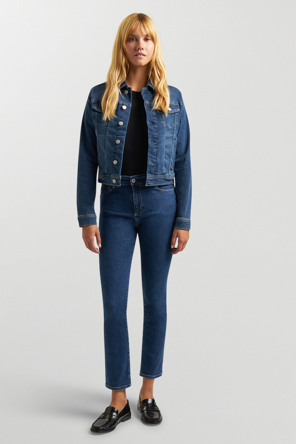 Mari ist eine Jeans mit mittlerer Leibhöhe und geradem Bein, bietet eine schmeichelhafte mittlere Taille und sitzt bequem an den Hüften, abgeschlossen mit einem geraden Bein und einem subtilen schmalen Beinabschluss