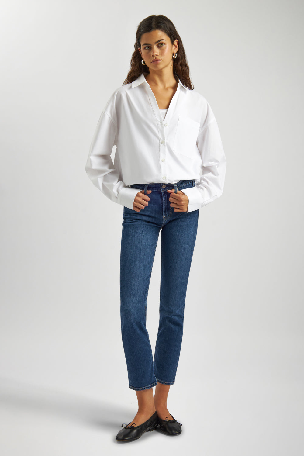 Los jeans rectos de tiro medio Girlfriend son un estilo inspirado en lo vintage con un ajuste relajado en las caderas y las piernas. La cintura de tiro medio y el corte recto termina justo a altura del tobillo, mientras que los detalles sutiles realzan el aspecto naturalmente desgastado para un atractivo atemporal.
