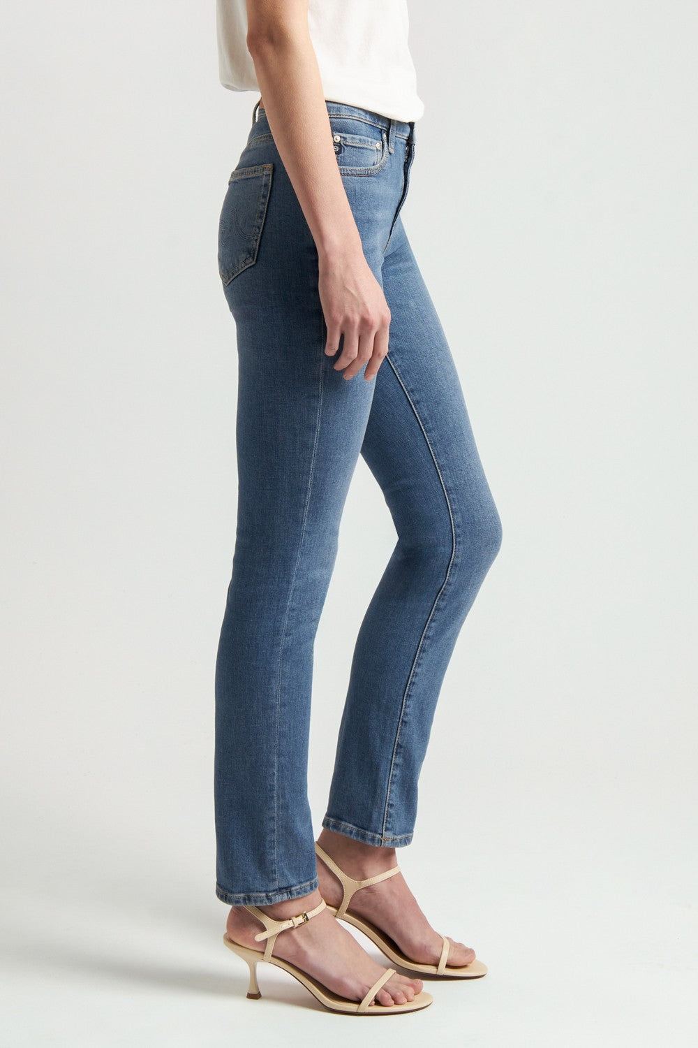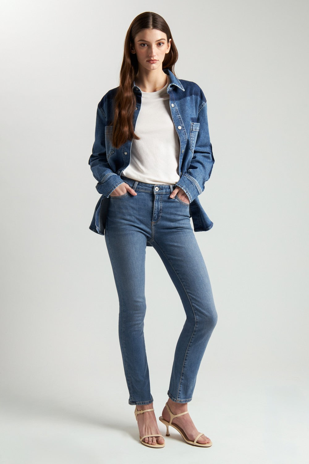 Mari es un jean de pierna recta de tiro medio, se ajusta fácilmente alrededor de las caderas, terminado con una pierna recta y una sutil abertura de pierna ajustada