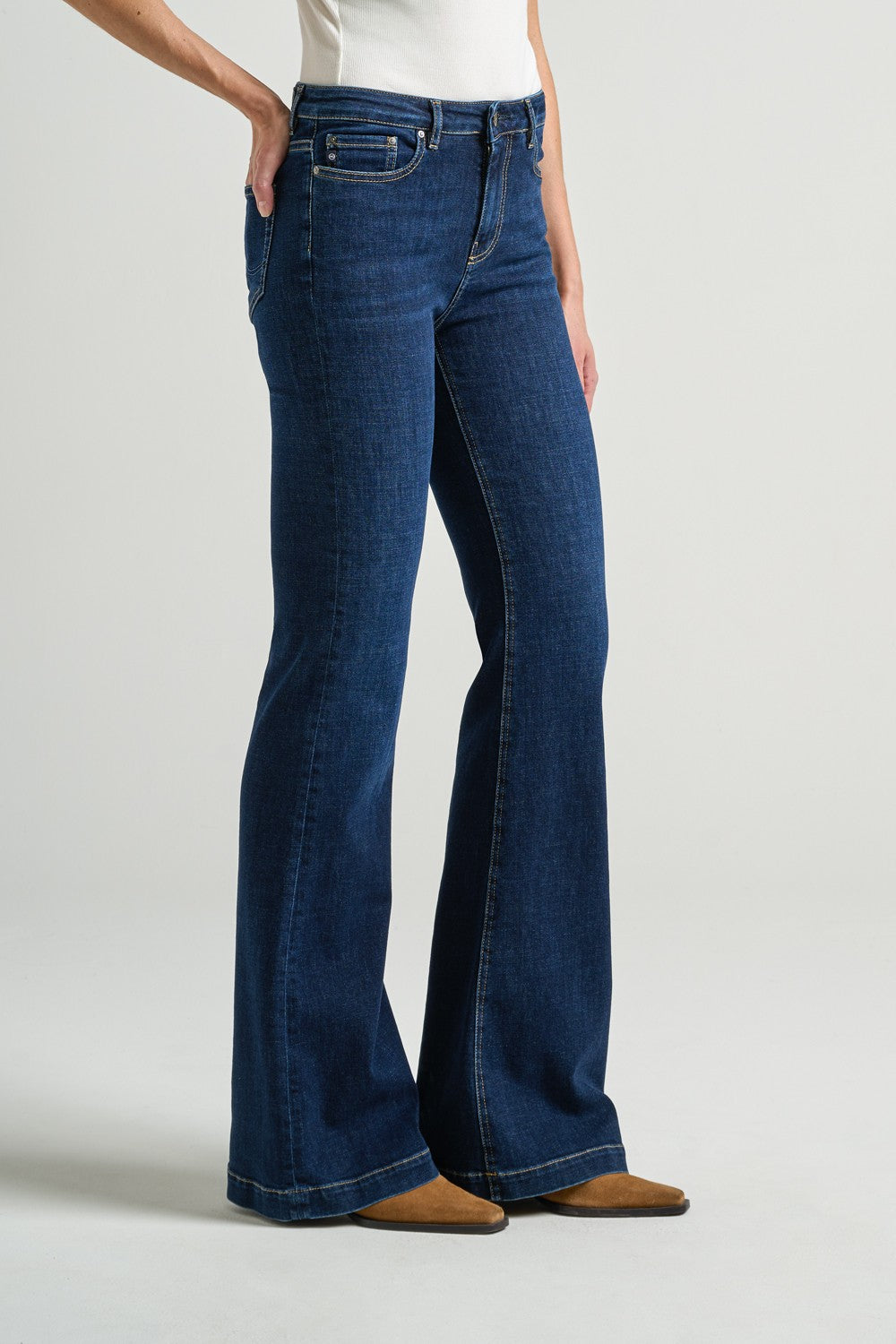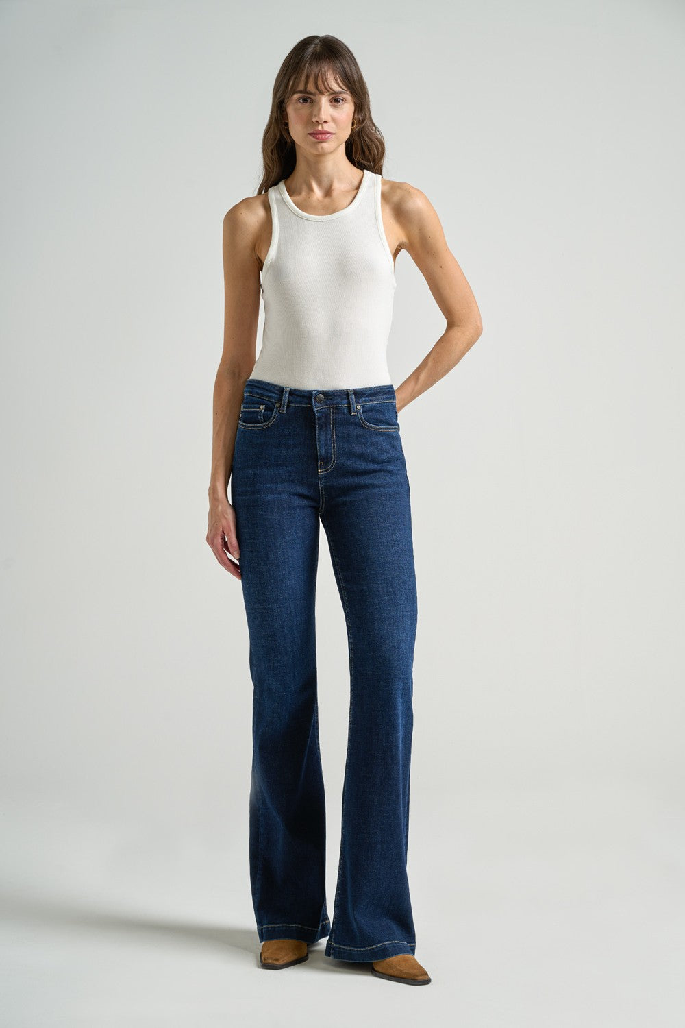 Our Tropea high-rise flare jeans feature a 70s-inspired silhouette. Designed to hug the hips and elongate the legs, the style sits high on the natural waist and has an extended length that flares out creating a nostalgic fit that is incredibly flattering to the figure.
