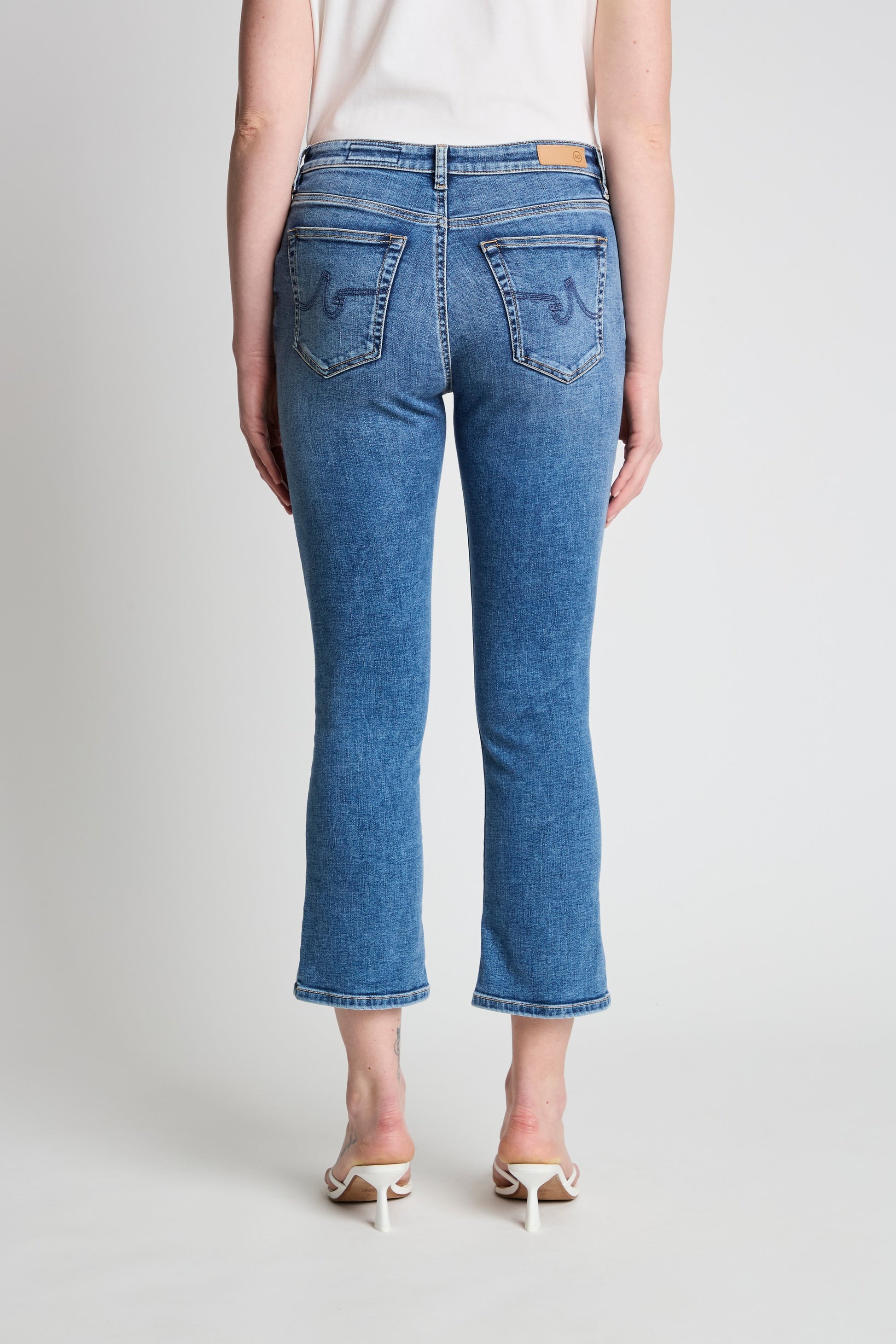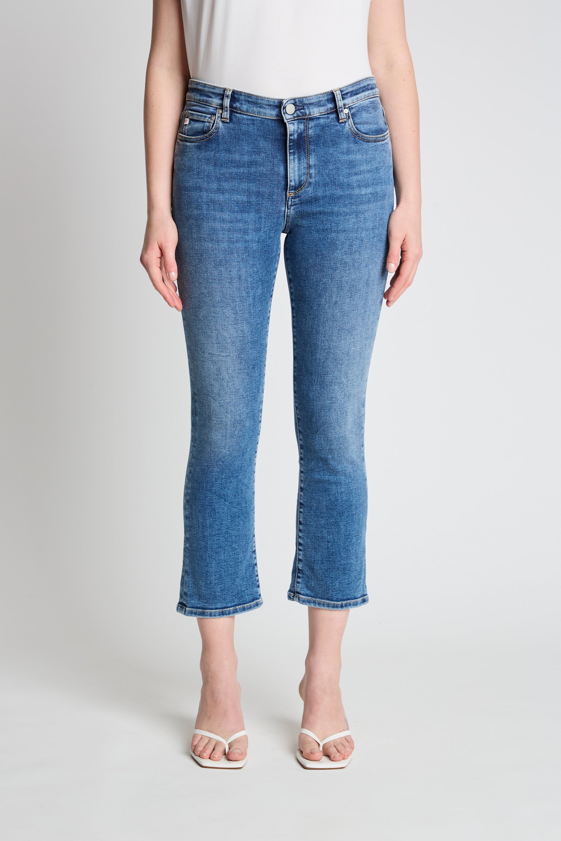 The Jodi Crop is a high-rise jean with a sleek fit through the hips and thighs, finishing with a subtle mini boot flare at the hem. Its cropped length creates a modern, polished silhouette for effortless, contemporary style.