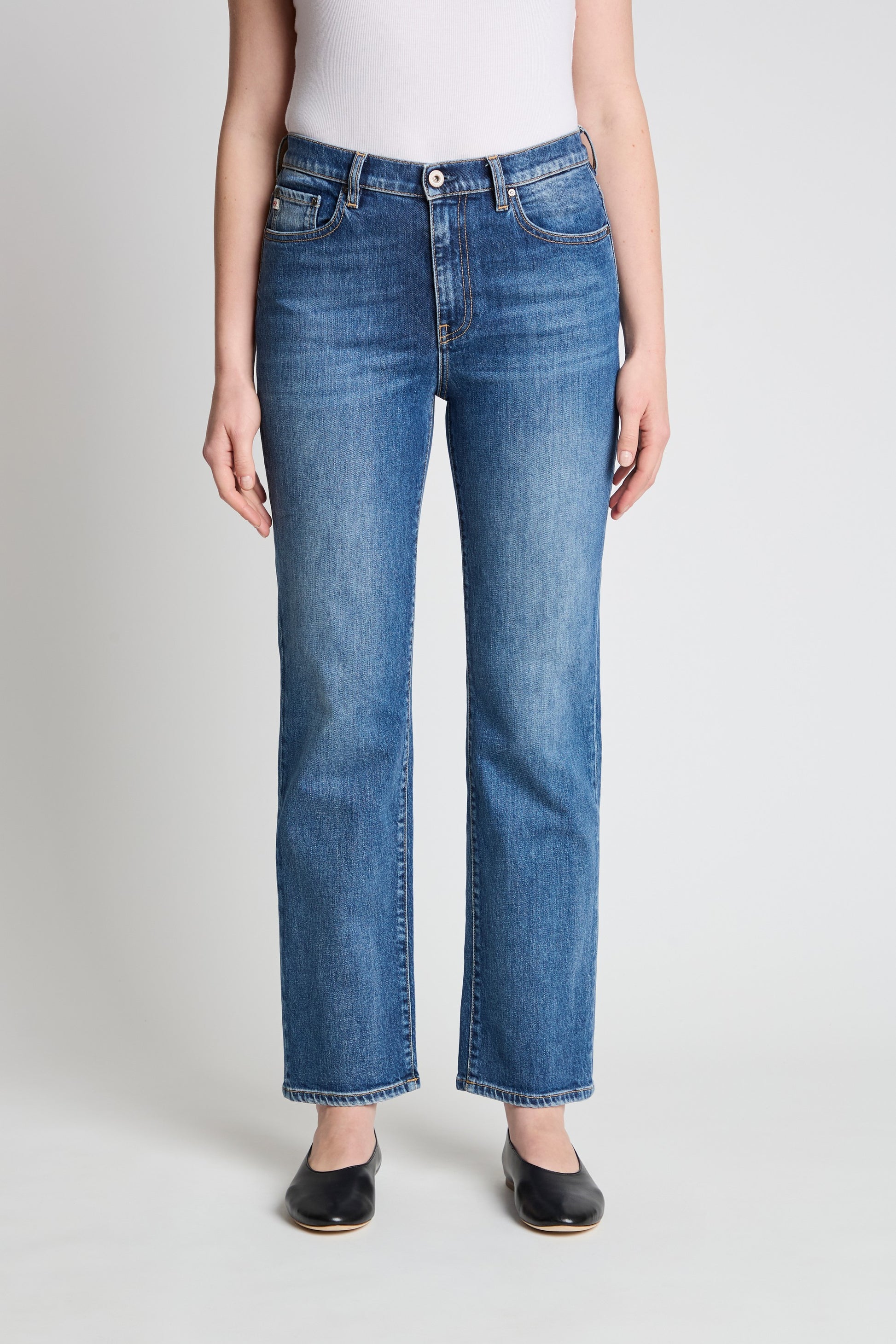 Brinley is our refined mid-rise straight fit, designed to sit comfortably at the natural waist for a universally flattering look. This classic five-pocket style falls into a clean straight-leg silhouette that offers effortless versatility. Subtle vintage-inspired touches give the pair a lived-in character, making Brinley an easy, everyday essential that pairs seamlessly with anything in your wardrobe.