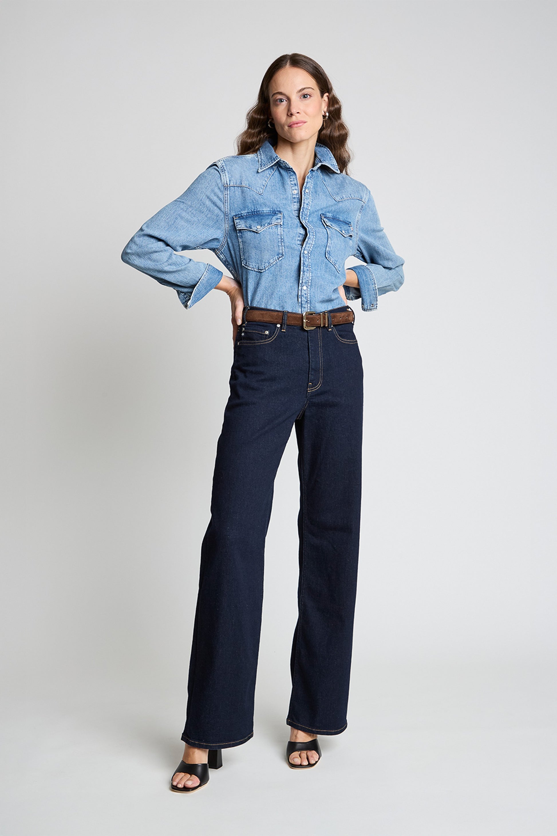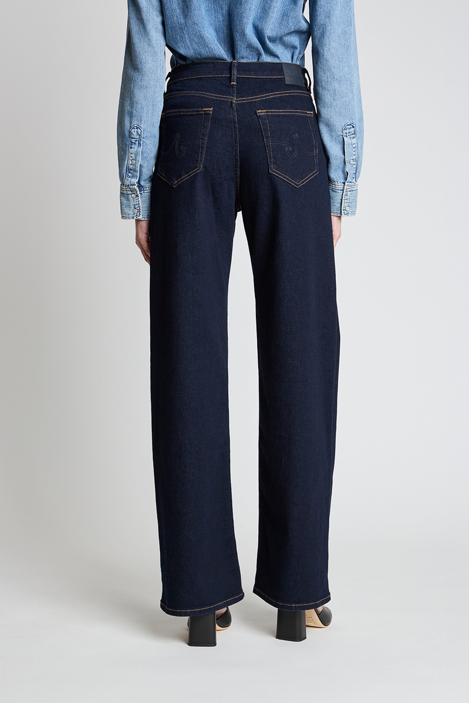 The New Bagg is a wide-leg style designed with a comfortable mid-rise waist and an easy fit through the hips. The silhouette falls softly from thigh to hem, with a slightly extended length that drapes effortlessly over the foot. Finished with a classic zip-and-button closure for a clean, timeless look.