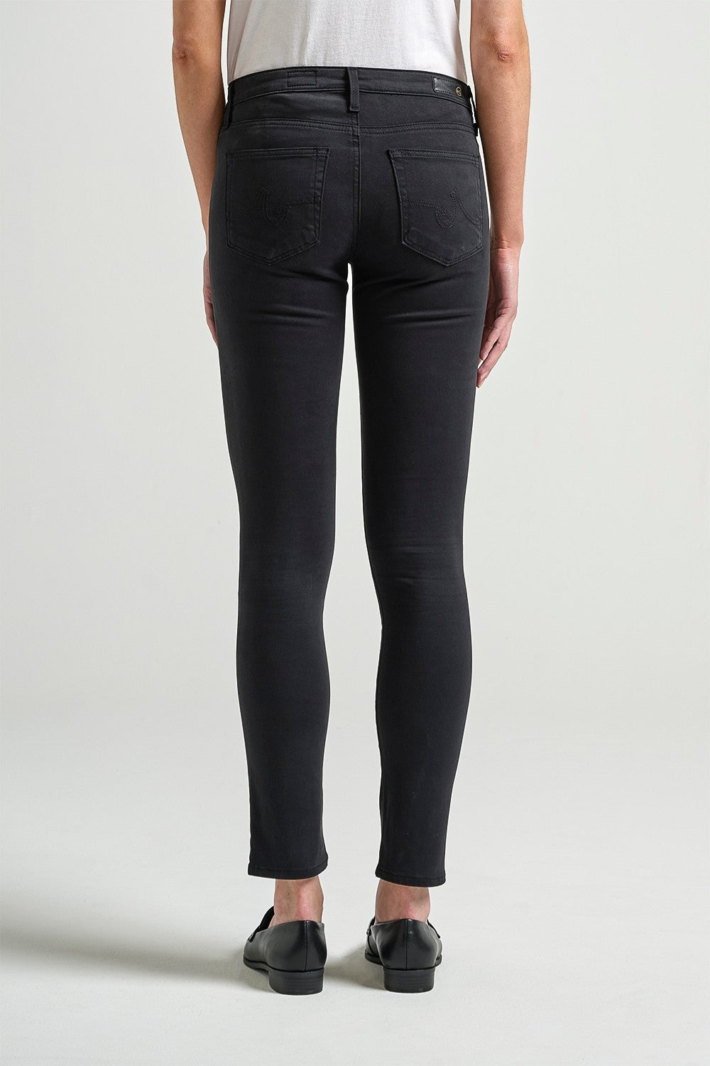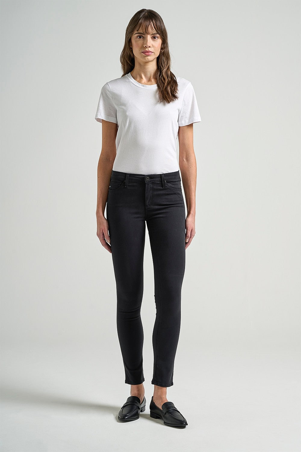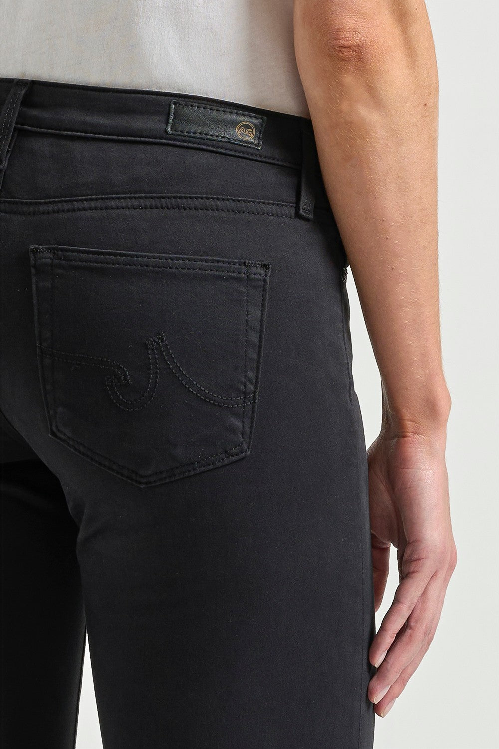Prima is a mid-rise cigarette jean featuring a saturated black shade and tonal details. This jean has a fitted silhouette through the hips and slight tapering at the leg, designed in 10 oz. Superior Stretch Black Denim.