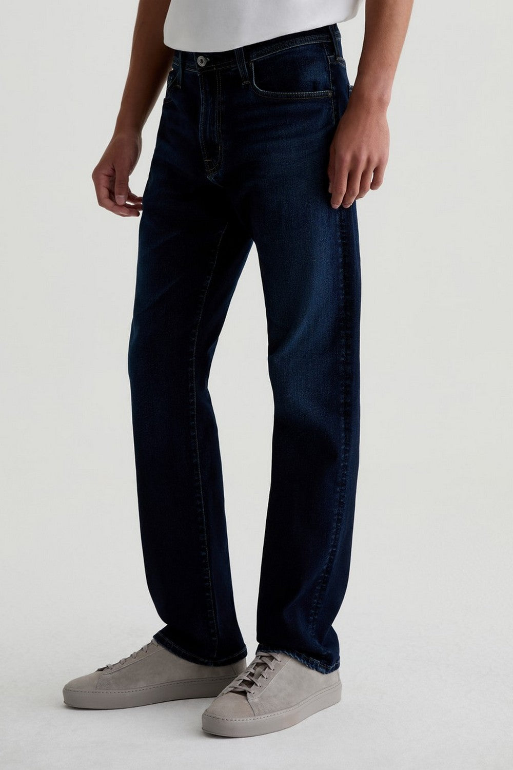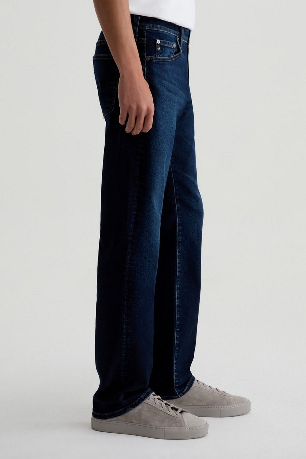 Un classique d'AG, notre jean droit pour hommes Protégé offre un confort exceptionnel et une rétention de forme en denim Empower de 10 oz. Mélangé avec la quantité parfaite d'élasticité, le style a une coupe facile au niveau des cuisses et une finition nette aux ouvertures des jambes. Cette paire à cinq poches présente une teinte indigo profonde et sombre avec un léger dégradé et des coutures contrastées.