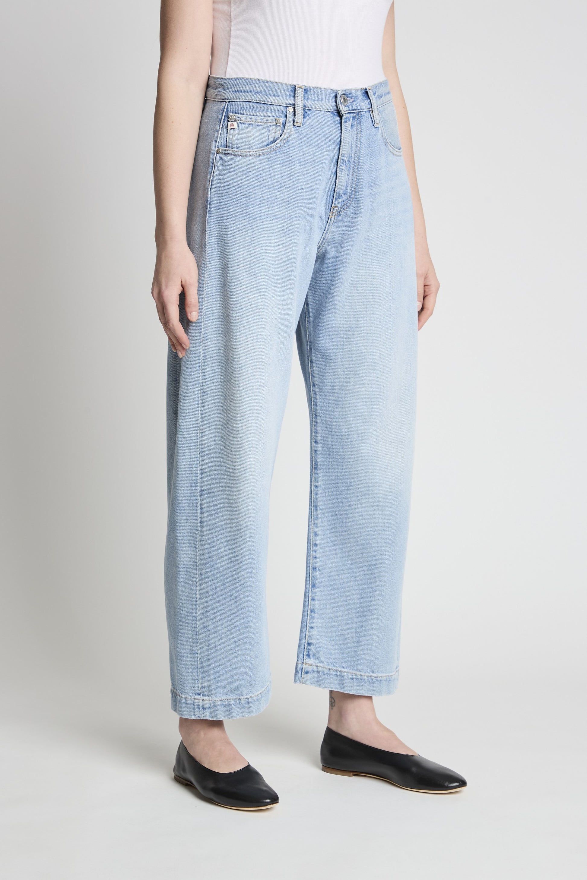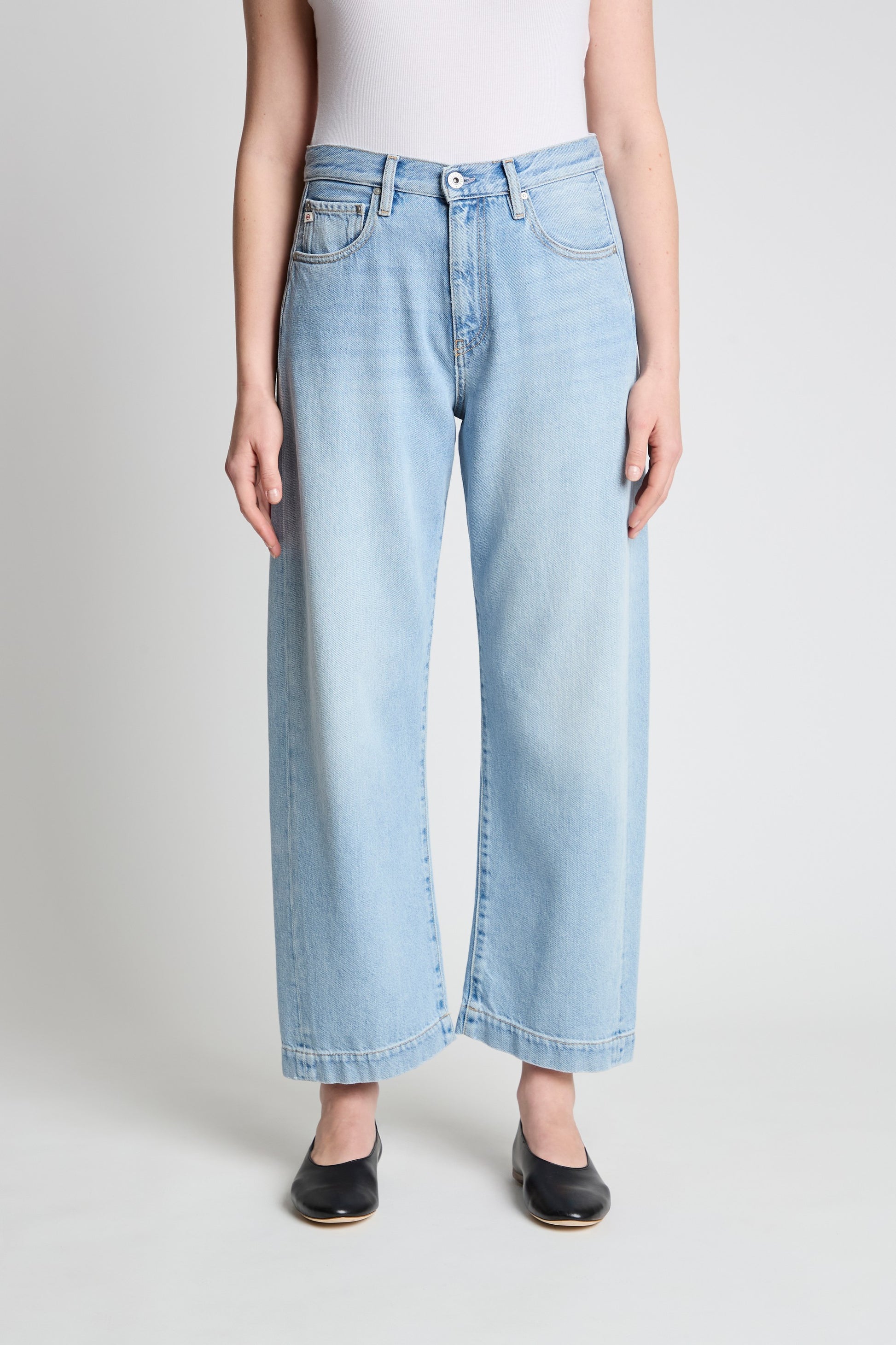 Hattie is a laid-back barrel leg jean with a high rise and an easy, curved shape, finished with side seam paneling. Cropped at the ankle with a wide leg opening, it has classic five-pocket styling and durable construction thats made for everyday wear.