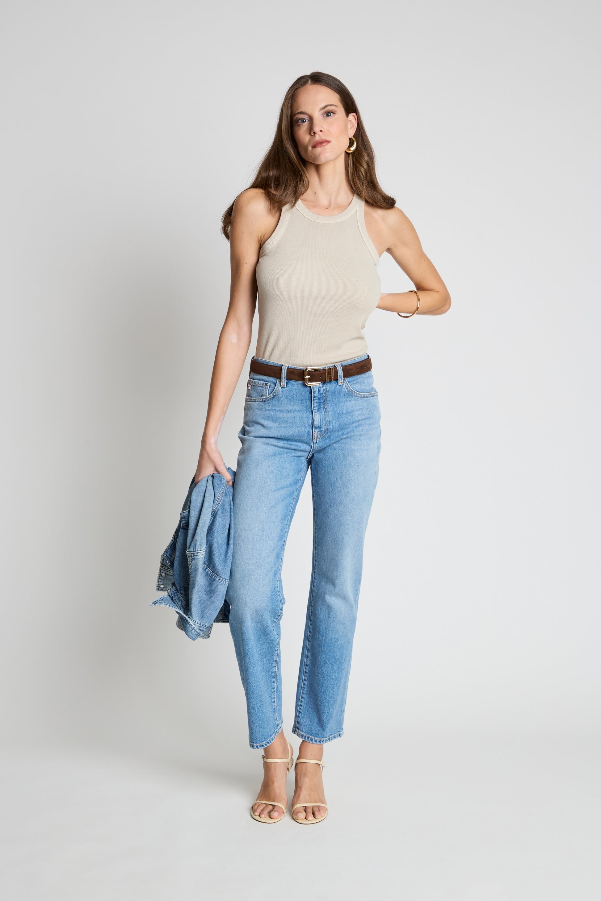Brinley is our refined mid-rise straight fit, designed to sit comfortably at the natural waist for a universally flattering look. This classic five-pocket style falls into a clean straight-leg silhouette that offers effortless versatility. Subtle vintage-inspired touches give the pair a lived-in character, making Brinley an easy, everyday essential that pairs seamlessly with anything in your wardrobe.