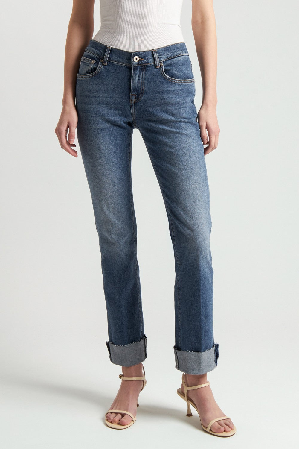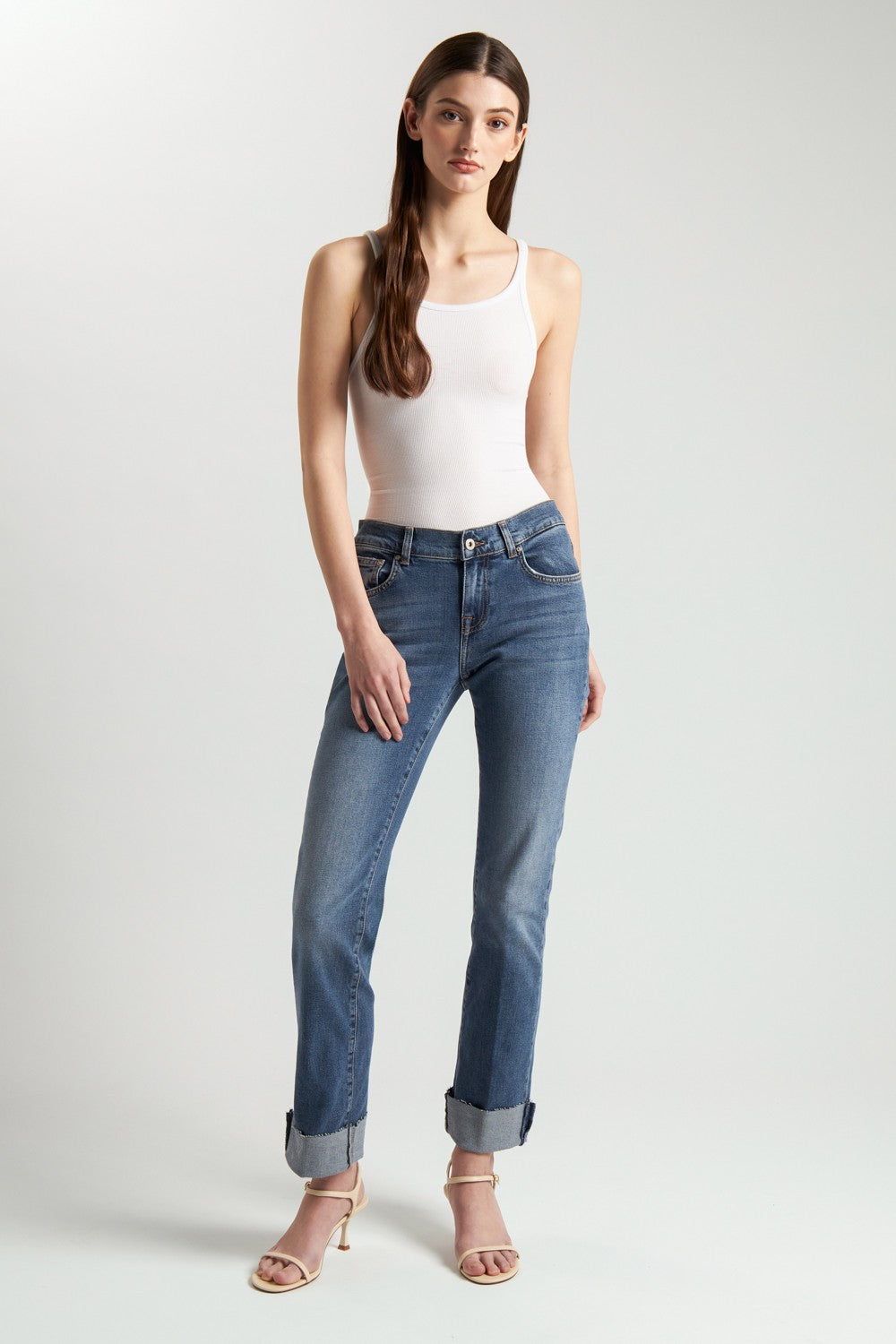 Our Cologne model is characterised by a slim straight fit; this means that the figure is gently contoured to your bodys shape, offering a sleek, modern silhouette. A peculiarity of the model is that it is designed to be cuffed, or not, depending on the shoes or the styling one wants to achieve.