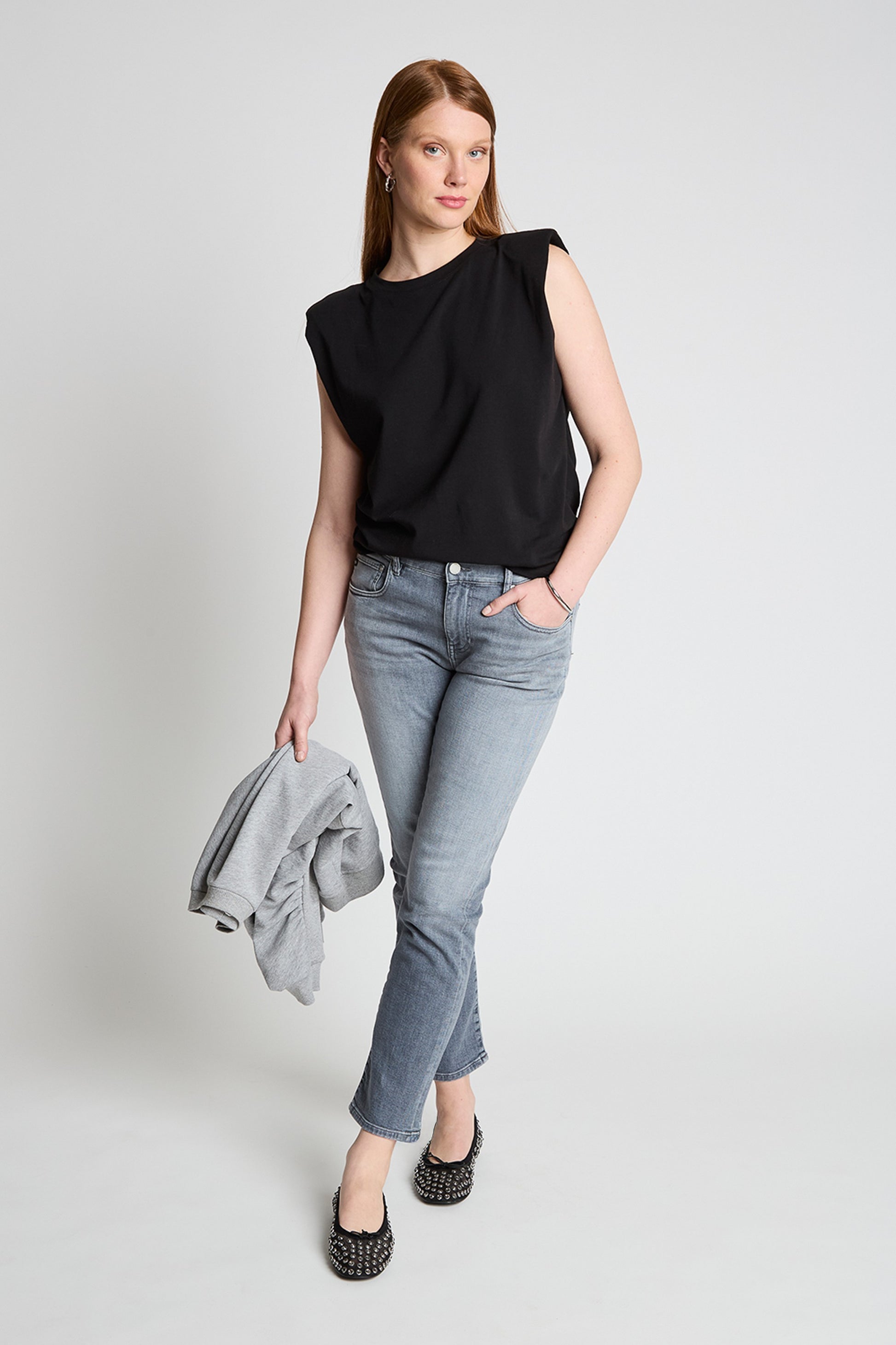The Ex-Boyfriend Slim jean features a flattering mid-rise waist and an effortlessly relaxed fit from hip to knee. The silhouette gently tapers toward the leg opening for a modern, subtly slimming effect.