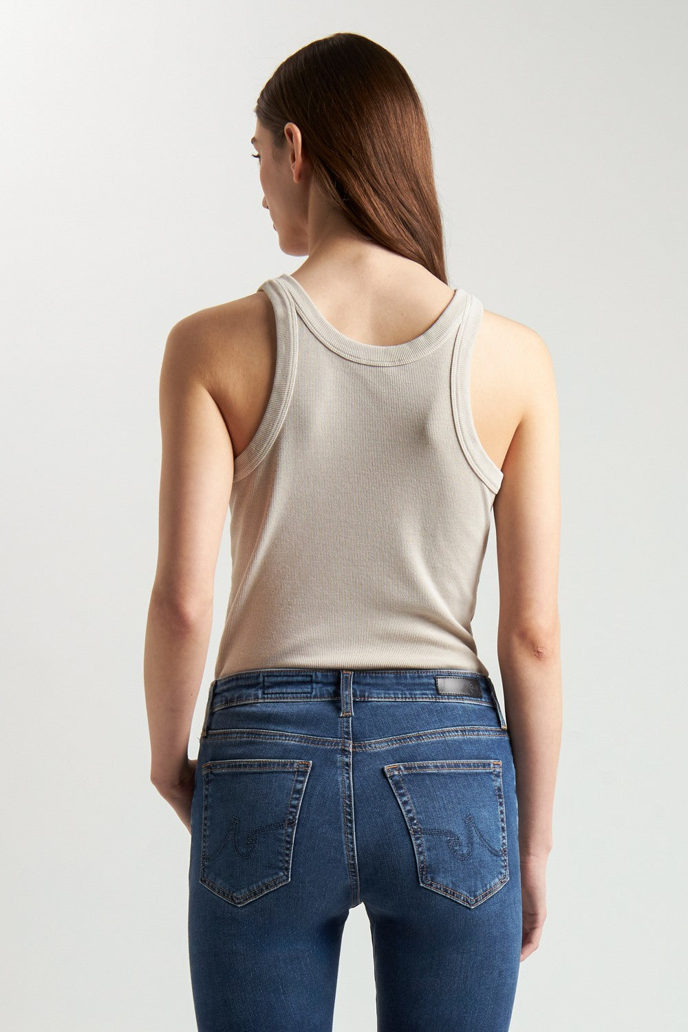 The Faro Tank in white features a slim fit with a figure-hugging rib knit, blended with cotton and viscose for breathability and added softness.