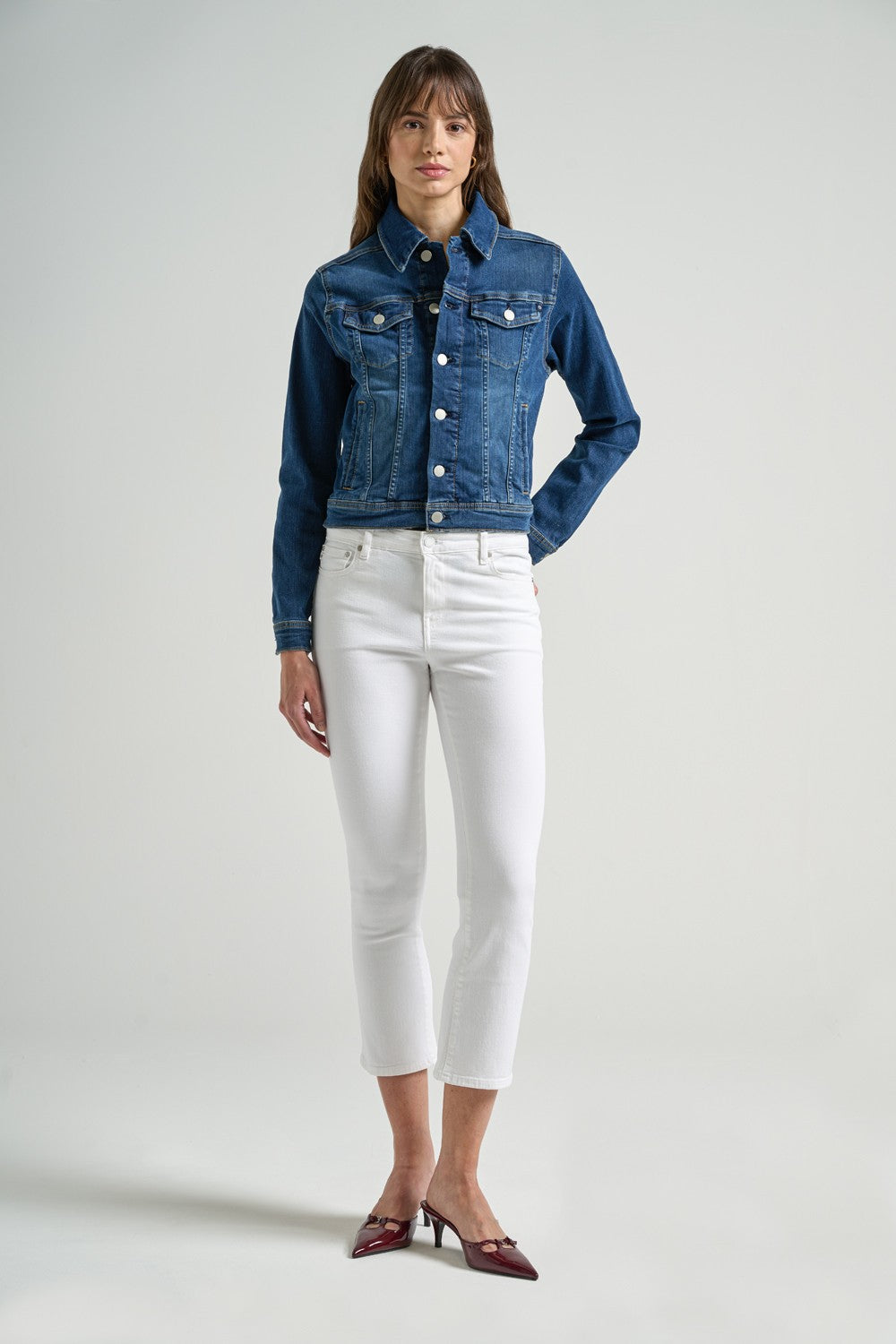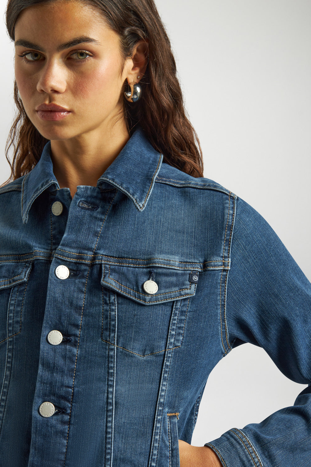 The Robyn Jacket offers a sophisticated reinterpretation of the classic trucker style, with a sleek, tailored silhouette and refined flap pockets. Expertly crafted for premium comfort, this jacket seamlessly merges modern elegance with timeless appeal