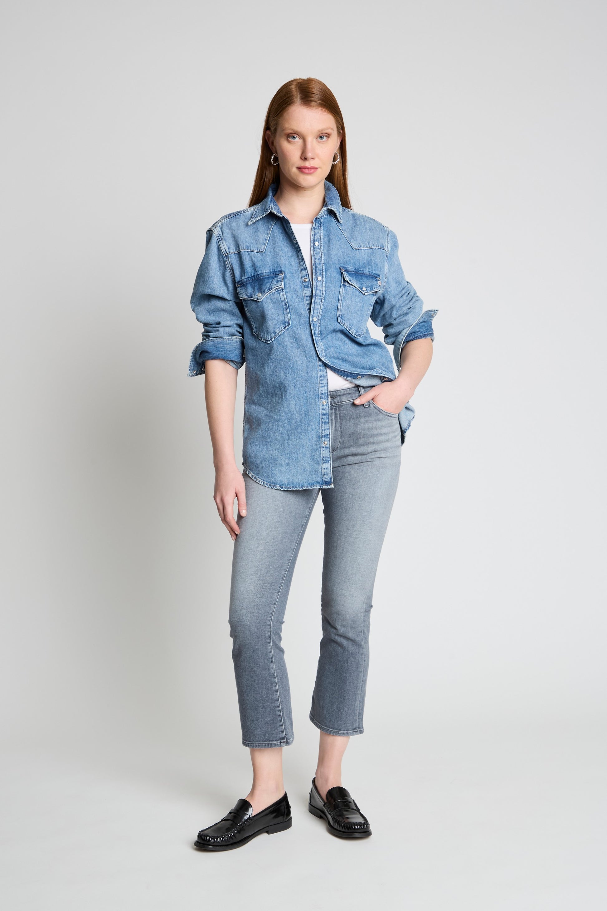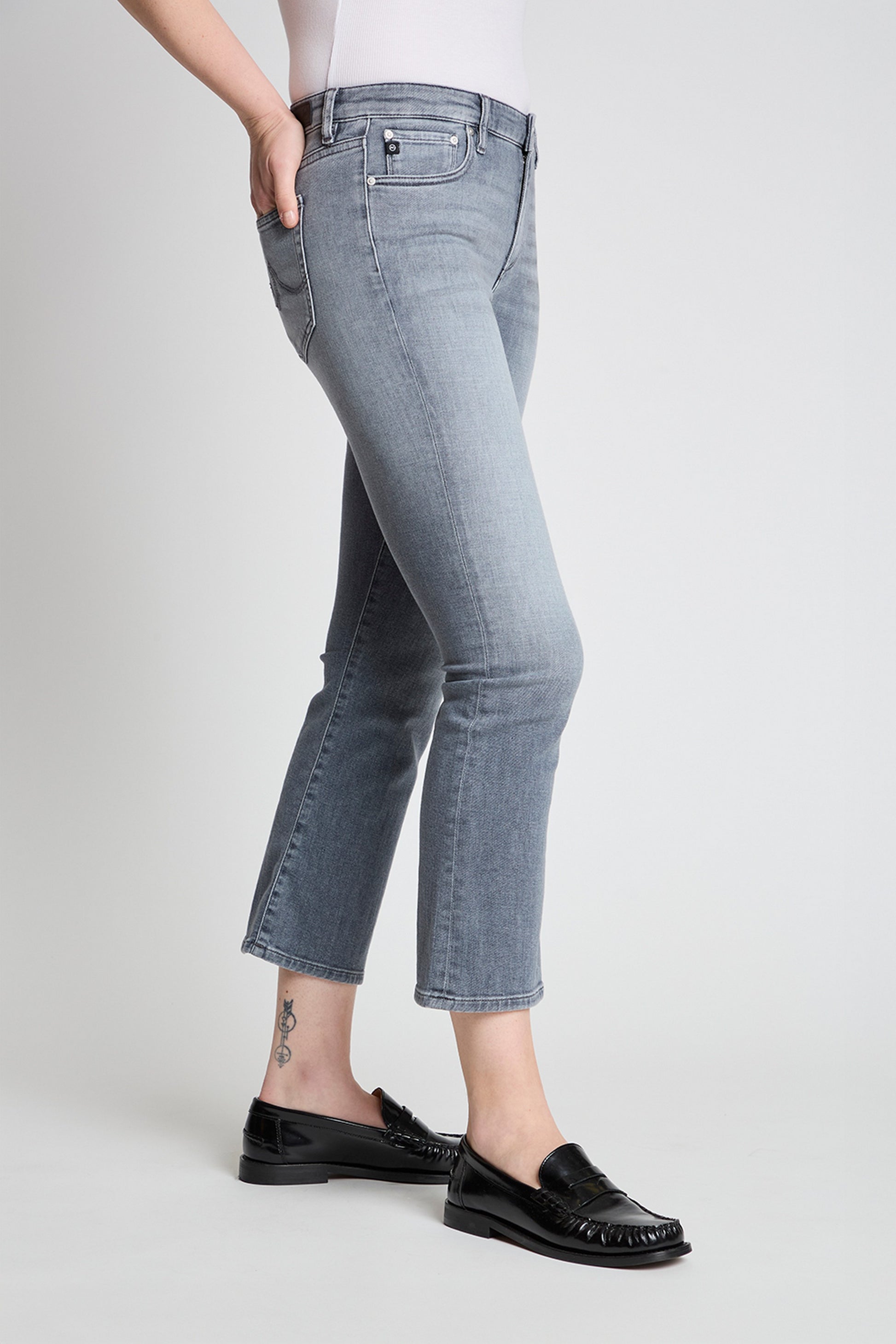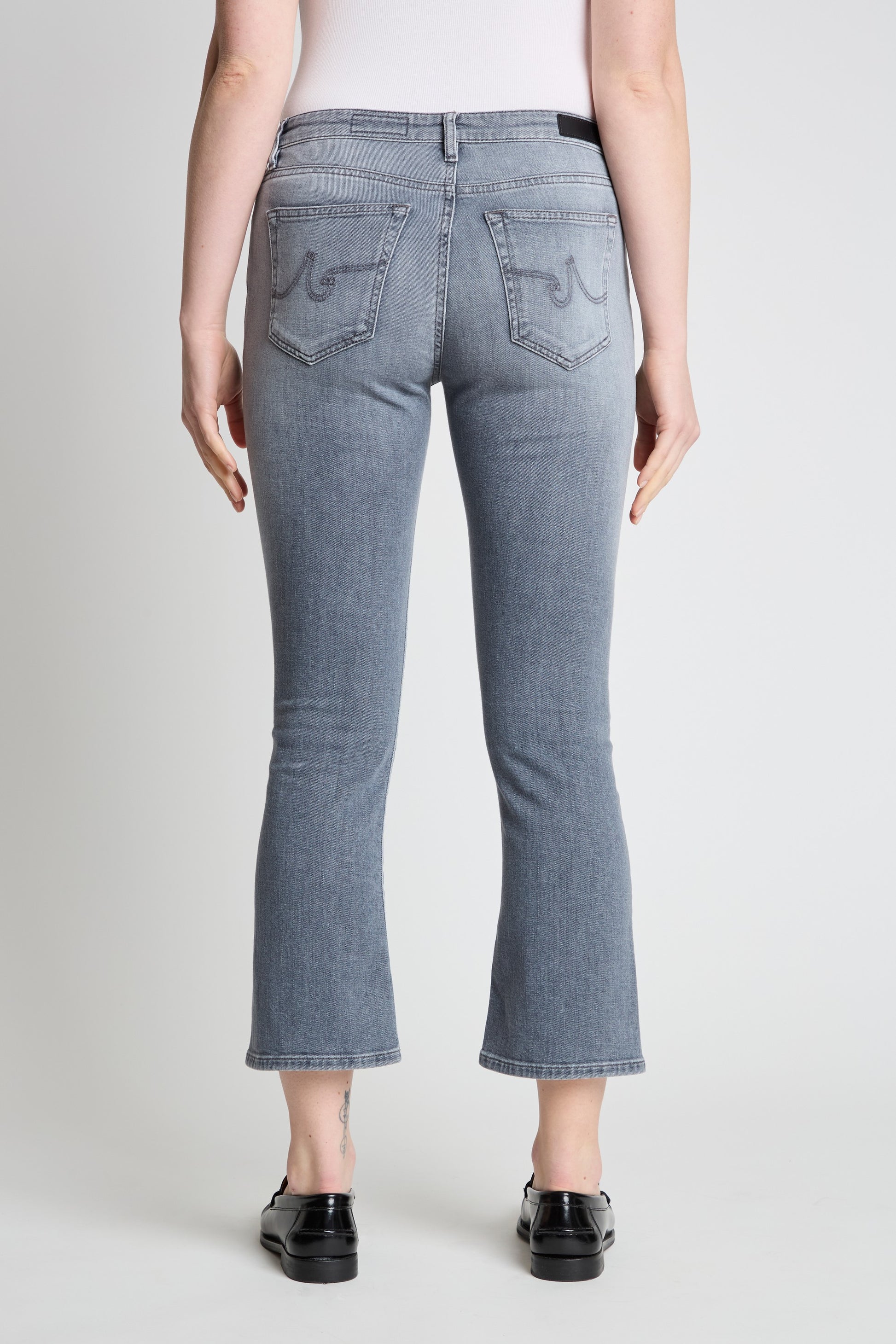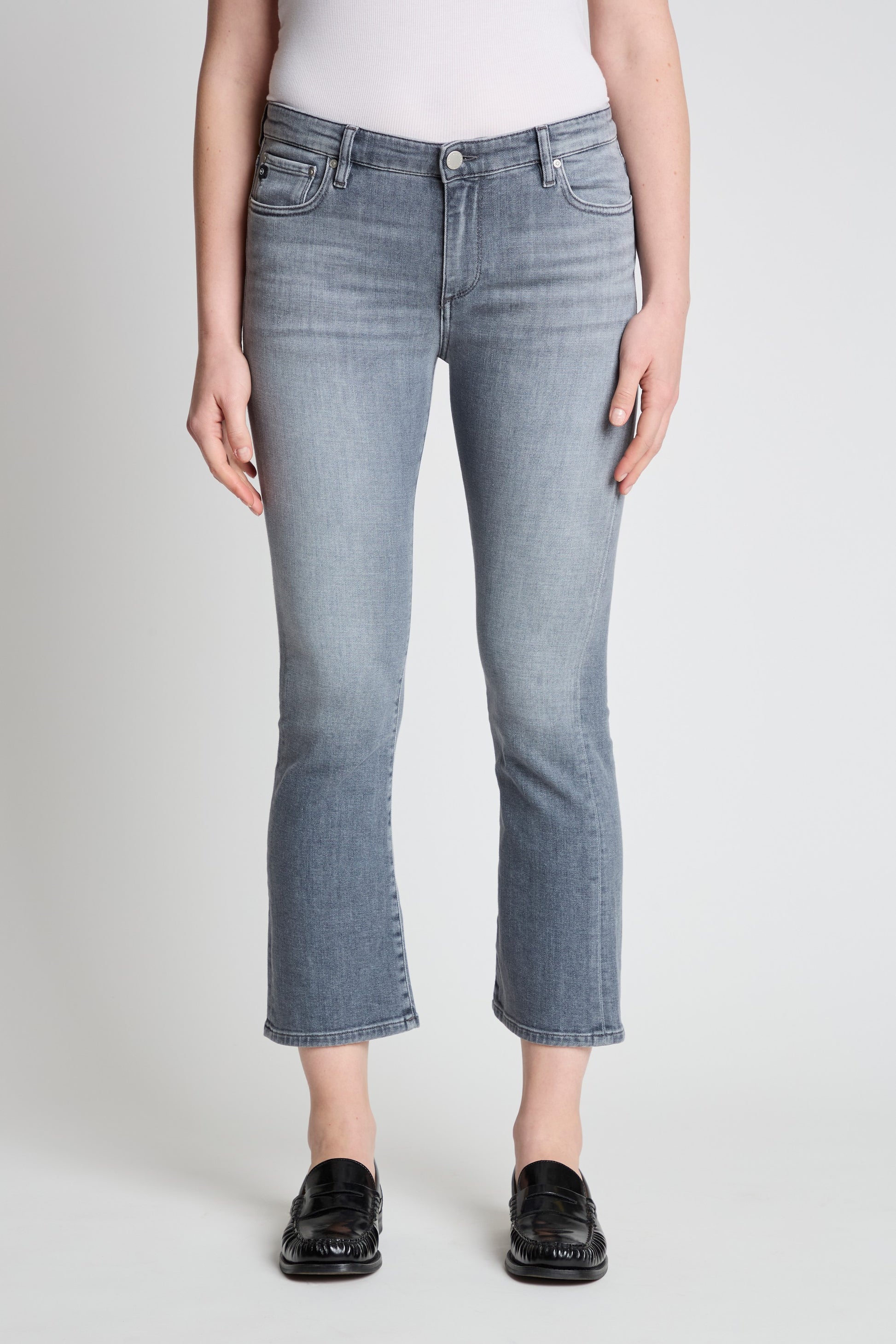 The Jodi Crop is a high-rise jean with a sleek fit through the hips and thighs, finishing with a subtle mini boot flare at the hem. Its cropped length creates a modern, polished silhouette for effortless, contemporary style.