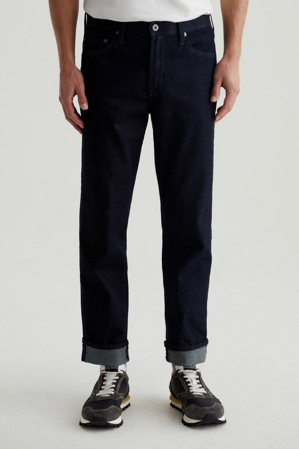The Kace 28 is a modern straight fit in a slightly cropped length thats easy to wear cuffed. Crafted in 11 oz. stretch-blend Lead Denim from Japan, these straight-leg jeans for men have a mid-rise waist and a relaxed fit from hip to knee before tapering at the leg opening. The five-pocket pair features a clean, dark indigo shade that can easy by dressed up or down.