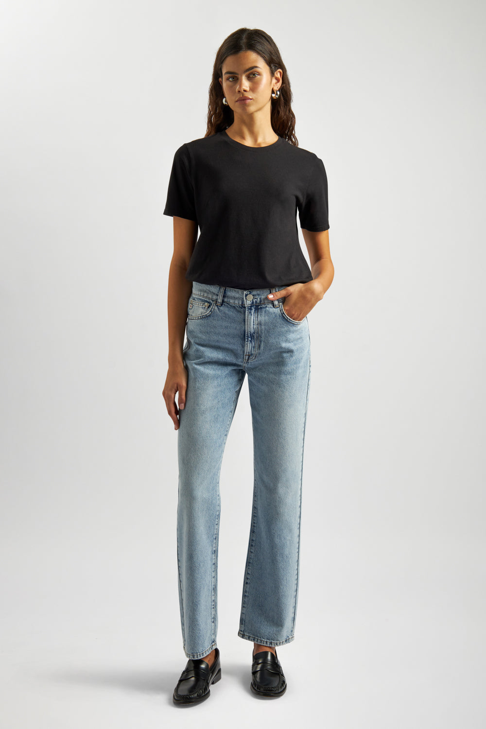 Lanzarote is our new mid-rise jean. These five-pocket jeans sit comfortably at the natural waist and fall into a straight-leg silhouette, perfect for year-round styling.