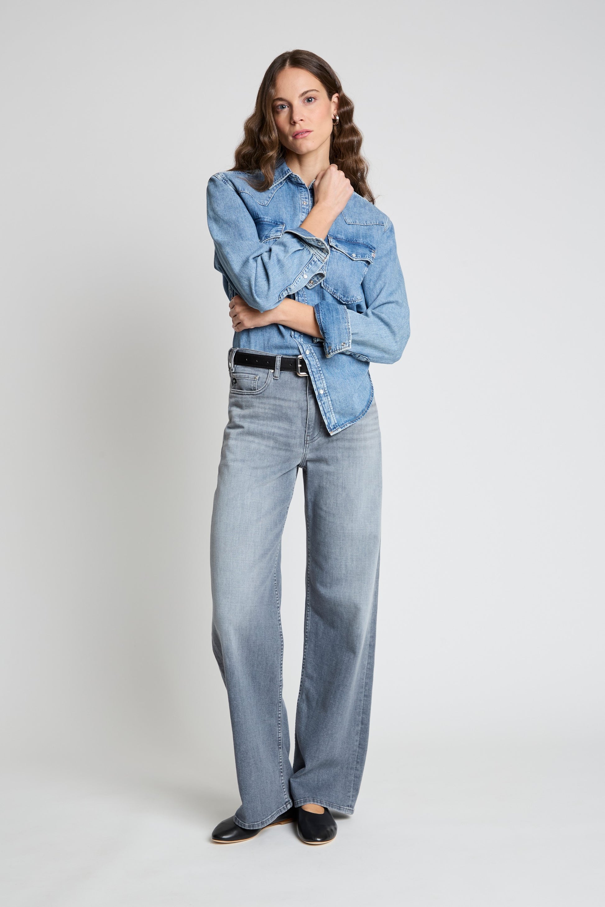 The New Bagg is a wide-leg style designed with a comfortable mid-rise waist and an easy fit through the hips. The silhouette falls softly from thigh to hem, with a slightly extended length that drapes effortlessly over the foot. Finished with a classic zip-and-button closure for a clean, timeless look.