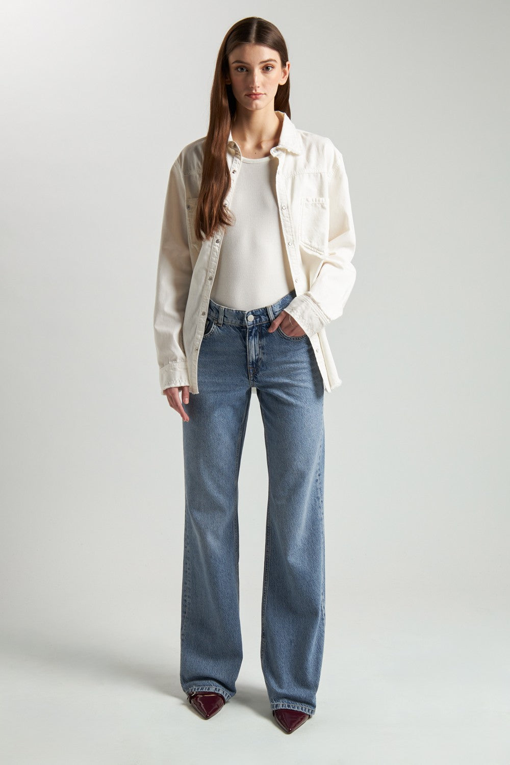 Our iconic Padua jeans, embody a relaxed flare style with a contemporary mid-rise fit. Designed to enhance your natural curves, these jeans create a hyper-feminine hourglass silhouette, with a fitted upper block that perfectly hugs the waist and hips. The wide hems and subtle bootcut flare offer a stylish and comfortable fit, making them the perfect balance of modern and timeless appeal.