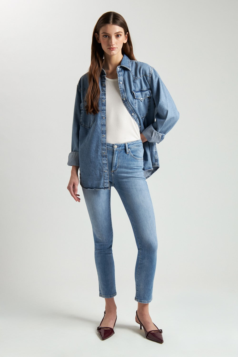 The Prima Ankle is a womens cigarette jean with a mid-rise fit, snug through the hips, and slightly tapered towards the ankle. It finishes with ankle-skimming cropped hems for a modern, sophisticated look.Made with stretch denim for a shape-hugging fit.