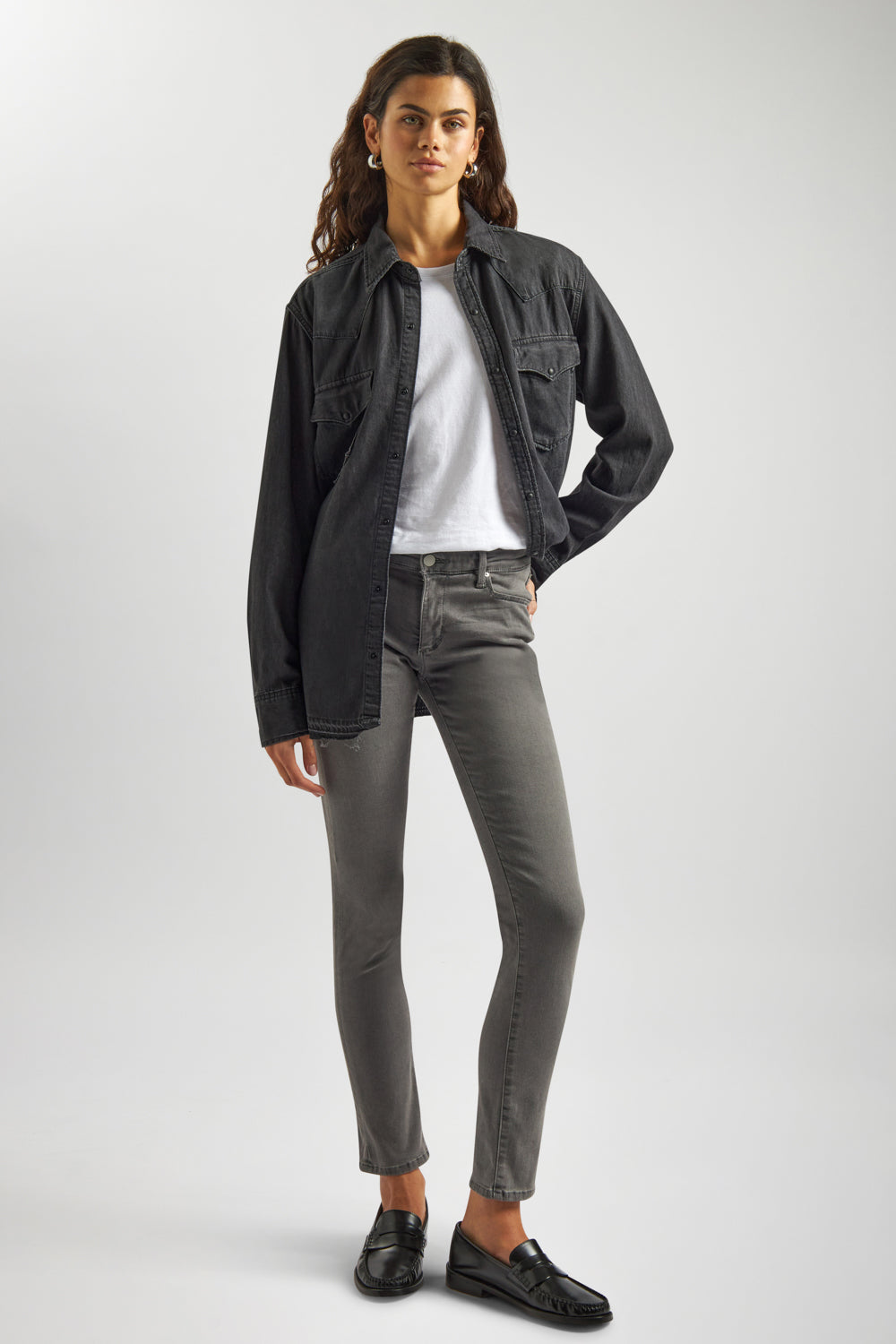 The Prima is a stylish mid-rise cigarette jean that flatters the hips with a fitted silhouette and gently tapers at the legs for a sleek, modern look. Featuring subtle fading and whiskering, these jeans offer a timeless, worn-in appeal that complements any wardrobe.