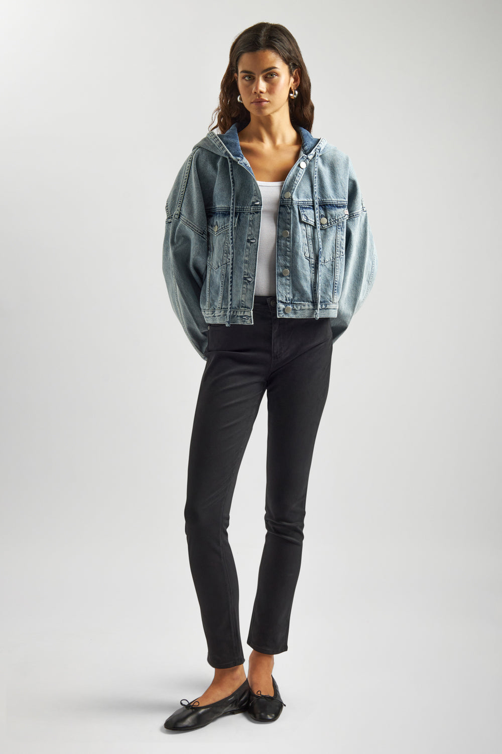 The Prima is a stylish mid-rise cigarette jean that flatters the hips with a fitted silhouette and gently tapers at the legs for a sleek, modern look. Featuring subtle fading and whiskering, these jeans offer a timeless, worn-in appeal that complements any wardrobe.