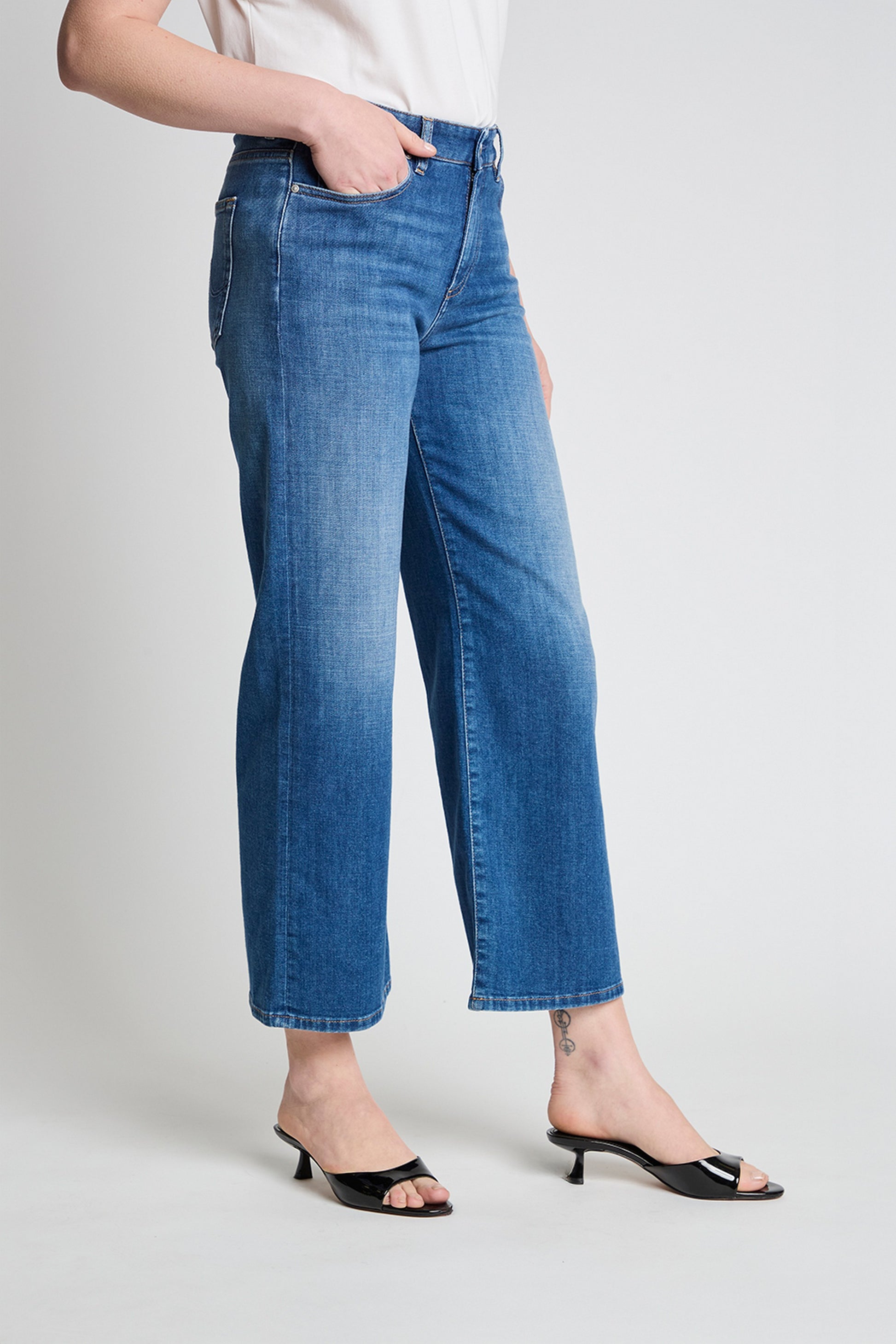 Saige Wide Leg is a mid-rise jean loved for its easy, relaxed silhouette and effortlessly modern shape. The wide-leg design offers fluid movement from hip to hem, creating a versatile look that pairs well with anything in your wardrobe.