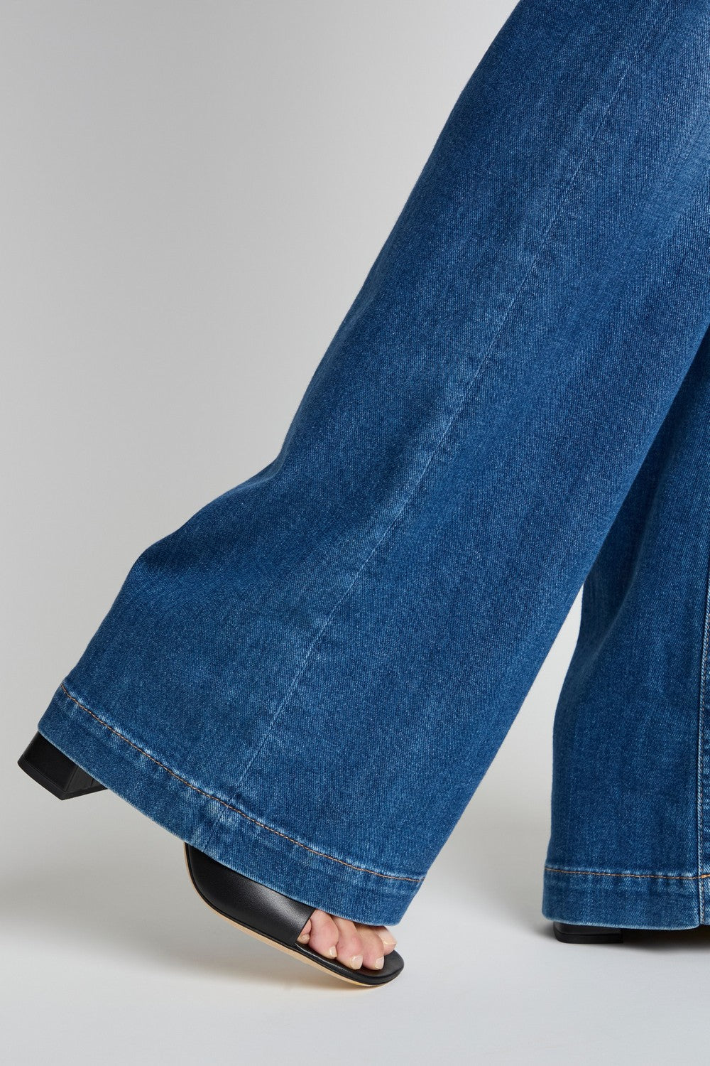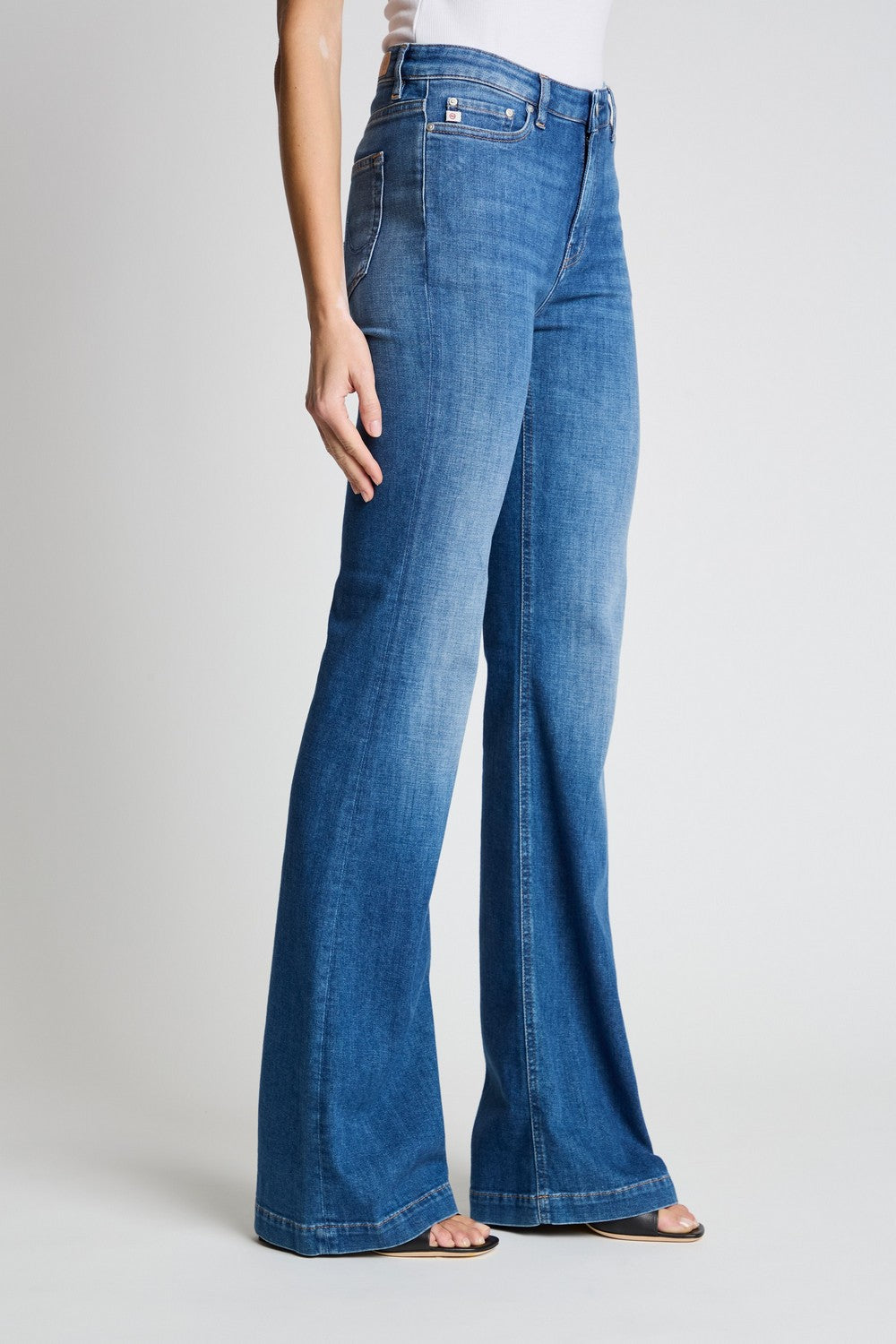 Our Tropea high-rise flare jeans feature a 70s-inspired silhouette. Sitting high on the natural waist, they offer an extended length that flows into a full flare, creating a timeless, retro-inspired look.